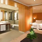Quarto suficientemente calmo, muito bem decorado com ambos cama de casal e banheiro. Tem o lobby bar, o estacionamento ótimo e uma piscina bonita. A propósito, estacionamento é possível por perto. O hotel está próximo dos bons restaurantes, os bares e também as principais atrações por causa da sua localização exclusiva. Tem proximidade de Plaza de Espana.